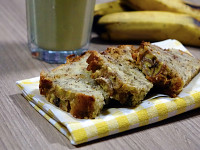 Faire préchauffer le four à 180°C. Ecraser les bananes avec une fourchette jusqu'à ce que le mélange devienne liquide. Rajouter au fur et à mesure tous les ingrédients liquides. Dans un second récipient, mélangez ensemble tous les ingrédients solides et incorporer ensuite ce mélange farineux dans le mélange liquide. Verser le tout dans un moule a cake huilé et cuire pendant 30-45 minutes. Pour savoir si le gateau est bien cuit vous pouvez vérifier en y plantant la lame d'un couteau, celle-ci doit ressortir sèche.